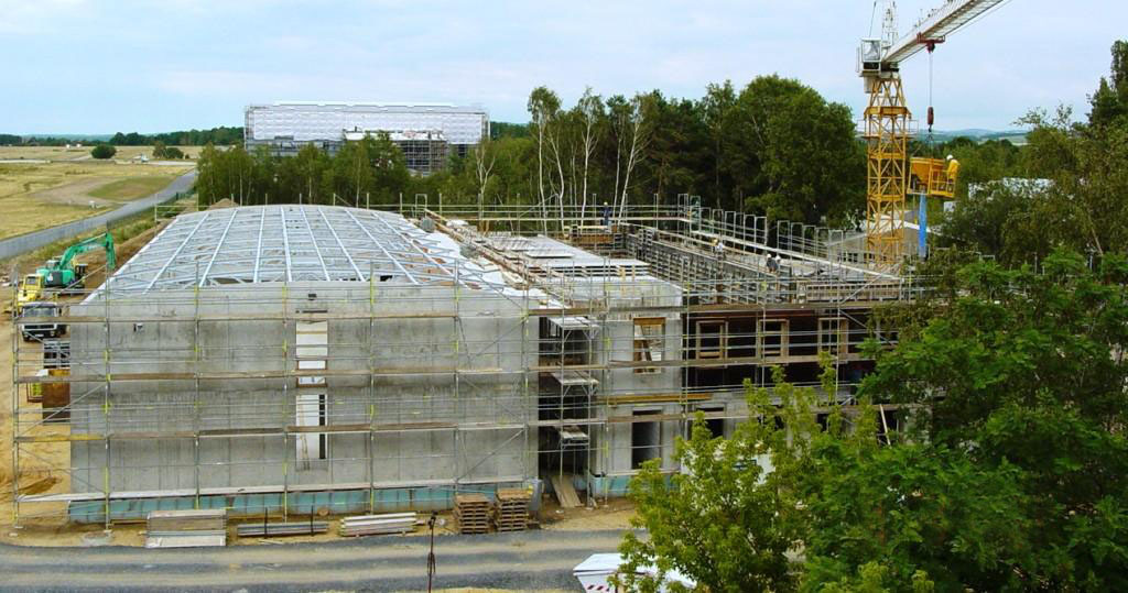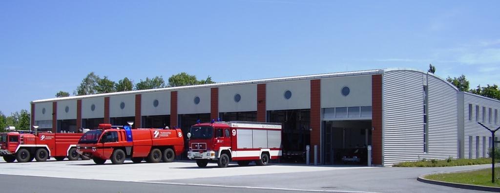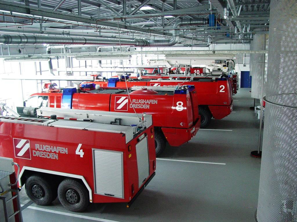 Auf dem Grundstück der Flughafen Dresden GmbH, wo vor Baubeginn ein Waldgebiet wurzelte, entstand in nur 8-monatiger Bauzeit eine hochmoderne, mit zeitgemäßer Technik ausgestattete Feuerwache. Nach einem umfangreichen Bodenaustausch und einer Geländeauffüllung von ca. 5m Höhe, entstand ein zweigeschossiges Stahlbetongebäude mit eingeschossigem Fahrzeughallenvorbau. Zum Umfang unserer Leistungen gehörte auch die gesamte Außenanlagengestaltung, u.a. mit Sportplatz, Flugbetriebsflächen, Regenwasserzisterne, Mulden-Rigolen-Versickerungsanlage, Übungslöschbecken, Sicherheitszäunen, Anbindung an die Rollbahn etc.