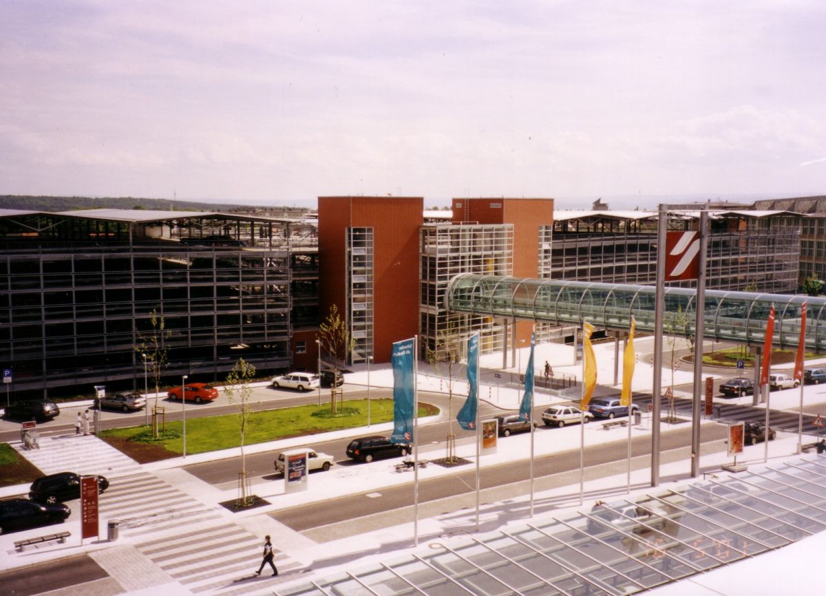 Die Flughafen Dresden GmbH beauftragte uns mit dem Neubau des Parkhauses gegenüber dem neuen Flughafenterminal. Das Parkhaus verfügt über insgesamt 12 Parkdecks mit jeweils 130 Stellplätzen, also insgesamt 1560 Stellplätze. Für die Zufahrt zu den einzelnen Parkdecks sorgt eine gegenläufige Spindel, in der die Auf- und Abfahrt jeweils um 180 Grad versetzt integriert wurde. So sind jederzeit Verkehrsströme von mindestens 300 Fahrzeugen je Stunde realisierbar.