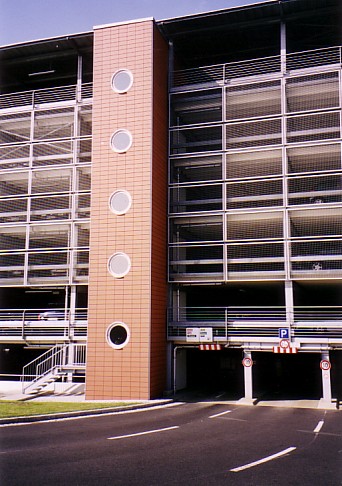 Ein- und Ausfahrten wurden speziell auf die Nutzung von 4 Parkdecks für Mietwagenvermietungsunternehmen gestaltet.